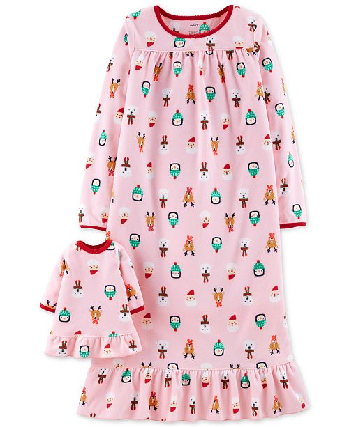 Carter S Toddler Little Big Girls Holiday Print Nightgown With Doll Nightgown Reviews Pajamas Kids Macy S